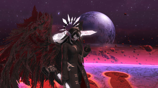 Present DayDevotus in the present day is a reaper and sex worker. She continues to work through trauma via her deceased fiance, causing her significant PTSD and mental illness. She continues to fight despite this, having a massive hatred for certain individuals and being very private about her life. She offers both services for hits, sex, and gear gathering. Her services are very under the counter though as there are many that want Devotus dead, and she cannot trust anyone due to being unaware of what their connections might be.Devotus has now done away with her past, doing away with the hatred of her voidsent origins. She has done away with the title Harbinger of Death and now calls herself Fallen Memoriate.Shortly after harmonizing with her full power and the events of the final days, she was hired by an unnamed organization to help dispose and capture 4 voidsent, known as some of the strongest in Eorzean history. Nearly losing her life to them on multiple occasions, she was forced to use ancient rites known only to her people. Only one of those powerful voidsent avoided capture, while its three brethren are imprisoned as crystals that adorn Devotus' scythe.Later down the line, Devotus managed to meet her mother, who she thought was dead, before finding out that her dead mother was actually a fake mother, and that her true biological mother, is still alive being an extremely strong Voidsent, holding a high rank in Troian society. It came to light that her father raped her mother in an attempt to make the child, which was successful.Realizing that her mother is as high of a rank in society as she is, she has now taken her mothers place in society, still holding malice towards her father for his actions.Devotus eventually ventured to the new world, learning the combat style from Vipers of old, a sparring technique used in old Troia. Later upon having sparred with strong combatants she took a calm life, moving to an estate with her family, having a home across from her mother, and settling down.